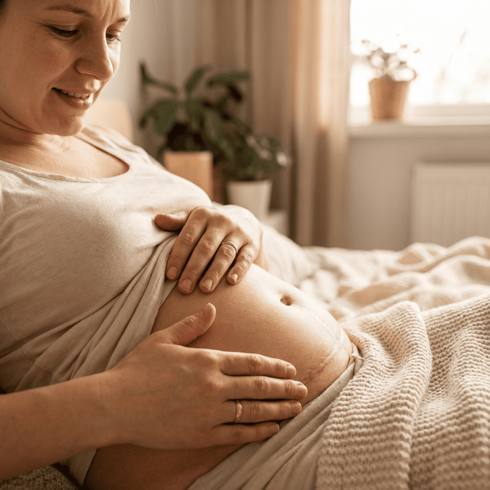 Worn hands-free for about 20 minutes a day, it fits easily into postpartum life — whether you’re resting, feeding your baby, or working. With consistent use, many moms notice reduced tightness, improved texture, and a scar that feels more normal rather than rigid.