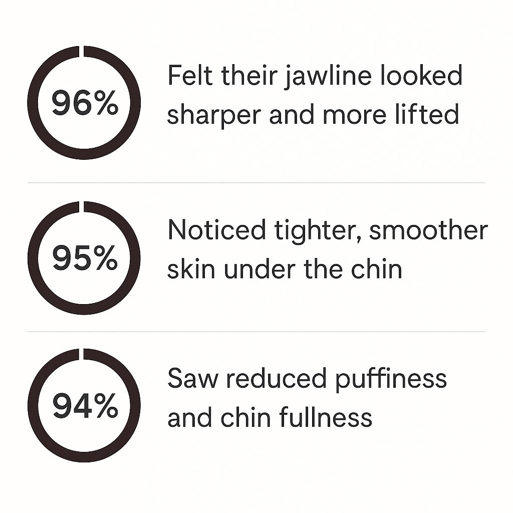 Within just a few weeks, customers report firmer skin, reduced puffiness, and a more defined profile — all with a simple, effortless routine.