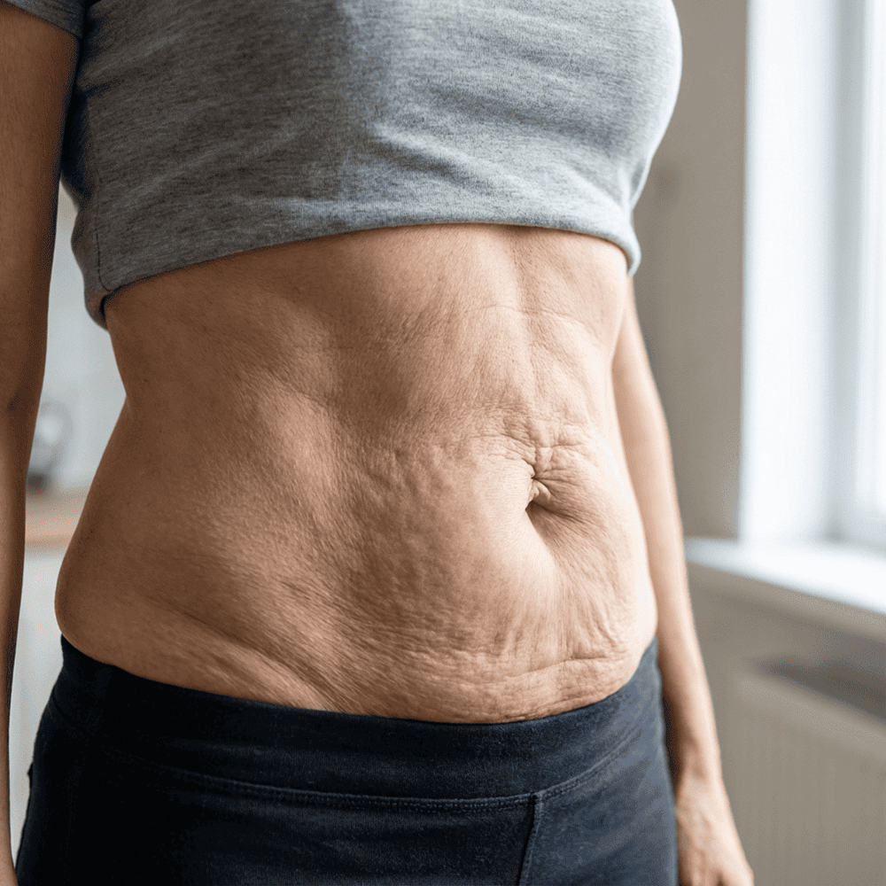 They worry about loose, thinning, crepey skin on the body — especially the belly, waist, hips, and lower back.