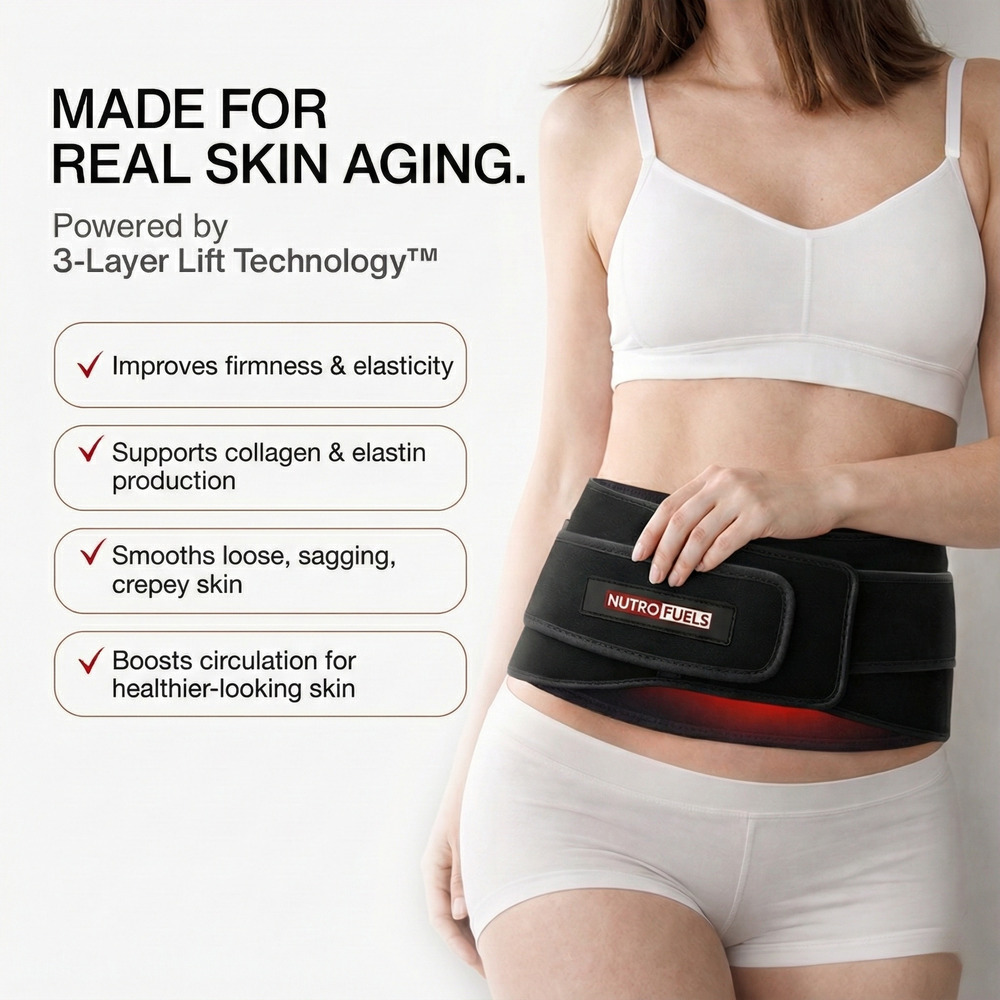 Instead of treating just the face, the Nutrofuels™ Red Light Belt delivers clinically backed red (660nm) and near-infrared (850nm) light to larger body areas — where aging shows the most.